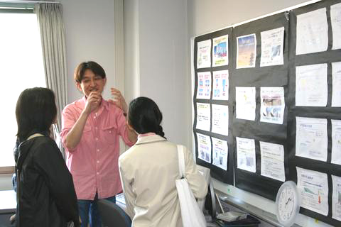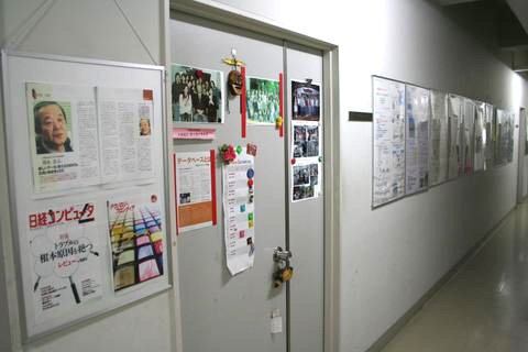 ・コンピュータグラフィックスの最新研究紹介(伊藤貴之) 13:00-16:00 理学部3号館704室 ▲今や身近になったコンピュータグラフィックス(CG)のしくみと実用例について、 身振り手振りで説明する伊藤助教授。 ・ 研究紹介パネル展示 13:00-16:00 理学部3号館3,4階 ▲情報科学科各研究室で行われている最新の研究内容を紹介するパネル展示。 ▲情報科学科各研究室の最新の研究内容がパネル展示されました。 ちなみにこの展示場所は、研究室のドアや廊下です。 ▲情報科学科各研究室で行われている最新の研究内容を紹介するパネル展示。 ・ 情報科学科 研究室公開 13:00-16:00 理学部3号館704室
